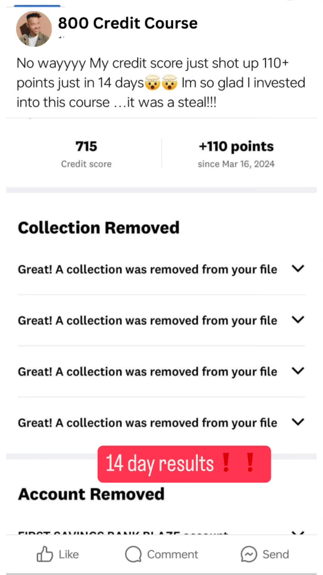 Like I mentioned before, this Course holds my step by step formula on how to get access up to 800 CREDIT SCORE .
